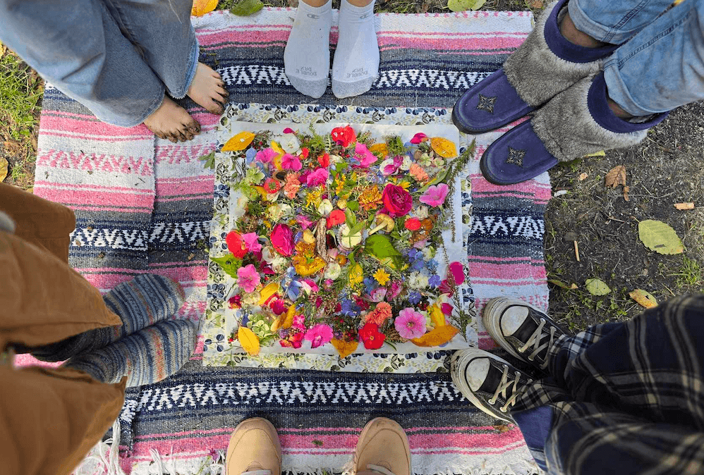 These can be co-created earth offerings made with natural elements or a guided individual activation using sacred stones, breathwork, and visualization.